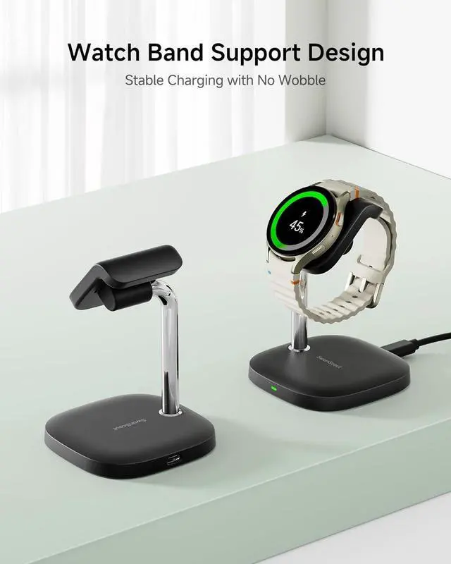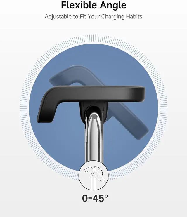 Charging Angle: The watch band support rotates from 0° to 45° allowing you to adjust the angle for a more comfortable charging viewAnti-Tipping