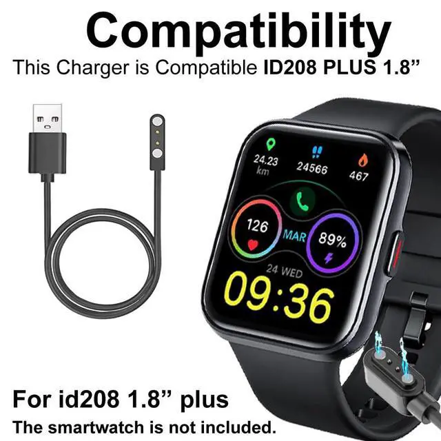 Smart watch Cables Compatible with ENOMIR Fitpolo Quican Tensky ID208 PLUS 1.8 and ENOMIR ID208BT SKG V7 Pro 1.7 Smartwatch 2 PCs2 charging PinsThere is Build-in Short-circuit protection IC in this charger to avoid overvoltage and overcurrent. If the charger meets short-circuit situation the protection IC will cut off the circuit automatically. If you forget to unplug the charger after charging the Protection IC will keep the safety2 same