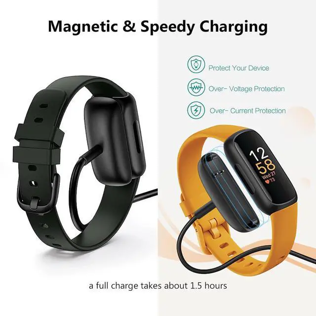 1. Wall charger + charging cord Compatible with Fitbit Inspire 3 Smartwatch. Magnetic Charging Cable make charging your watch utterly effortless. You do not have to remove the case or bands when charging with this charger2. [Raw Charging speed] The charger kit provides raw charging speed for about 1 hour on a full charge.
