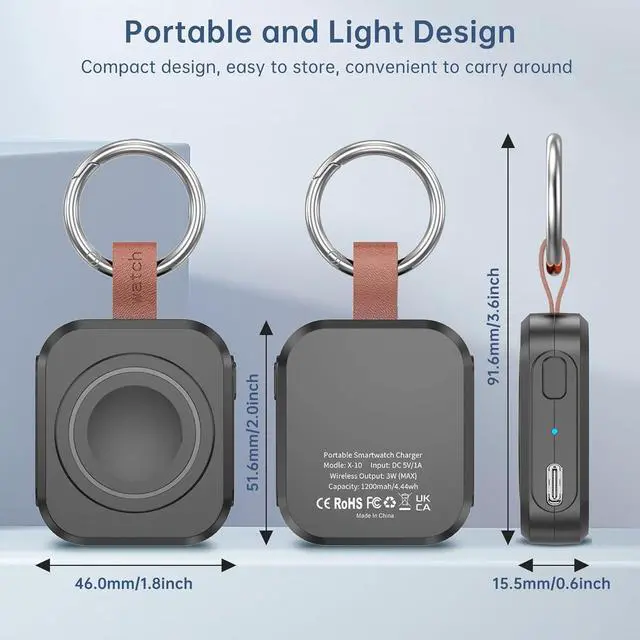 1200mAh Battery: The portable watch charger has a built-in 1200mAh battery that can charge your watch 1-2 times. Ideal goods for traveling exercising or extended outdoor activities.