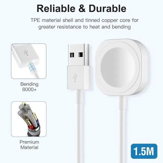 { 1.5M Longer but Portable } - The 5ft/ 1.5 m iWatch charger cable gives you more charging space. Sleek and compact our portable wireless charger easily fits on your travel bag or pocket for easy travel. { One for All Series Watch } - This Watch Charging cable Compatible with Watch Charger is designed to ensure that it fits all Series 9/8/7/6/5/4/3/2/SE/SE2/Ultra/Ultra2 including 38mm 40mm 41mm 42mm 44mm 45mm versions. { 24H Service Team } - If you have any questions about the item we look forward to hearing from you and will get back to you within 24 hours.