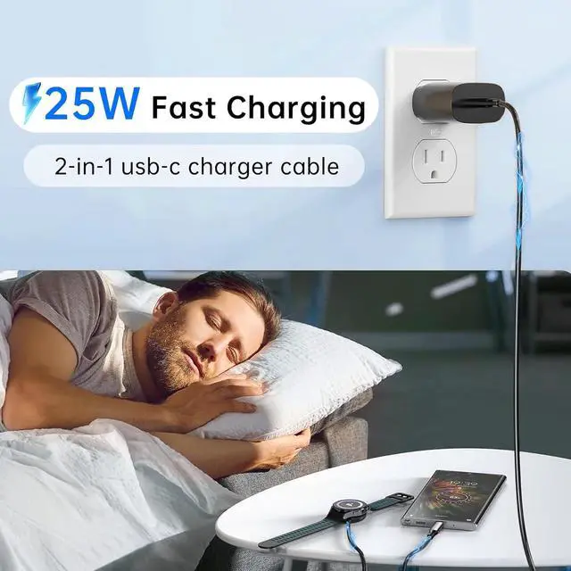 Package Contents: You will receive 1x 1.2 m( 3.9 feet) 2-in-1 portable Galaxy watch charging cable and 1x 25W charger adapter. It is a great gifts idea for your family friend and yourself. If you have any questions please contact us directly.
