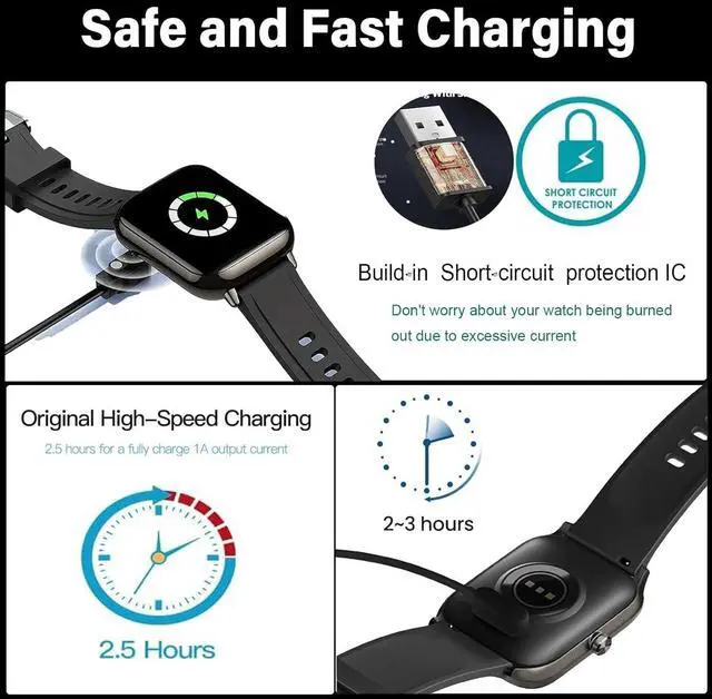 Efficient Fast ChargingAdvanced fast charging technology optimized circuit design ensures stable output of current and voltage. Strong Magnetic Design Built-in pure copper probe with solid magnetic power supply stronger adsorption watch charging than other chargers. Short-Circuit ProtectionMultiple protection mechanisms such as short-circuit protection over-voltage and over-current protection effectively prevent the battery from overheating and damage. Stable and DurableMade of ABS material and flexible PVC. The charger cable has been tested for bending over 5000+ times. Portable and ECO-FRIENDLYThe charging cable is designed to be lightweight and portable so it can be put into your travel bag and carried around.
