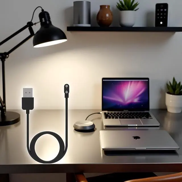 USB power adapters and portsDESIGN: Black color cable with specialized magnetic charging connector that securely attaches to the watchCONVENIENCE: Simple plug-and-charge design eliminates the need for complex setup or additional accessories