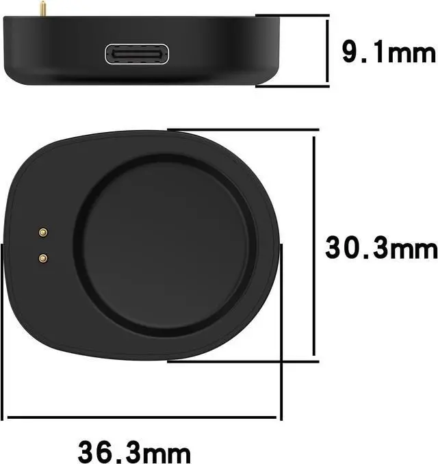 Size: 36.3 * 30.3 * 9.1 mmConnector type is USB Type C phone charging cable are can be used for your watch T-rex 3 to charge.