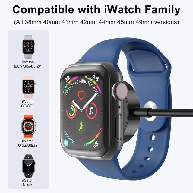 ? Efficient & Smart ChargingThis iwatch charging cable provides a safer and faster charging mode it only takes 2.5 hours to fully charge save your time? Strong Magnetic AdsorptionThe iWatch Charger with built-in magnet has strong adsorption perfectly snaps and centers to the charging coil on the back of your watch stable and will not fall off you will get wonderful charging experience? Universal CompatibilityThis Magnetic iWatch Charger Compatible with iWatch Ultra Series 9/8/7/6/SE2/SE/5/4/3/2/1 (including 38 mm 40 mm 41 mm 42 mm 44 mm 45 mm 49mm Version)? Multiple Safety ProtectionBuilt-in advanced chip with over-current over-voltage short-circuit over-charge and over-temperature protection.