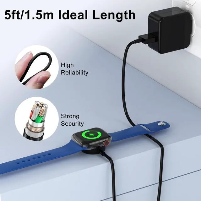 Protect your watch battery against damage? Travel EssentialsWith lightweight and portable design the 5FT/ 1.5M Watch charging cable is fit in your travel bag to carry around and is suitable as a backup charger for your watch?? What You Will GetWe provide 2-PACK 1.5M magnetic watch charger cable 18-month worry-free warranty for any quality issue. Super cost-effective!