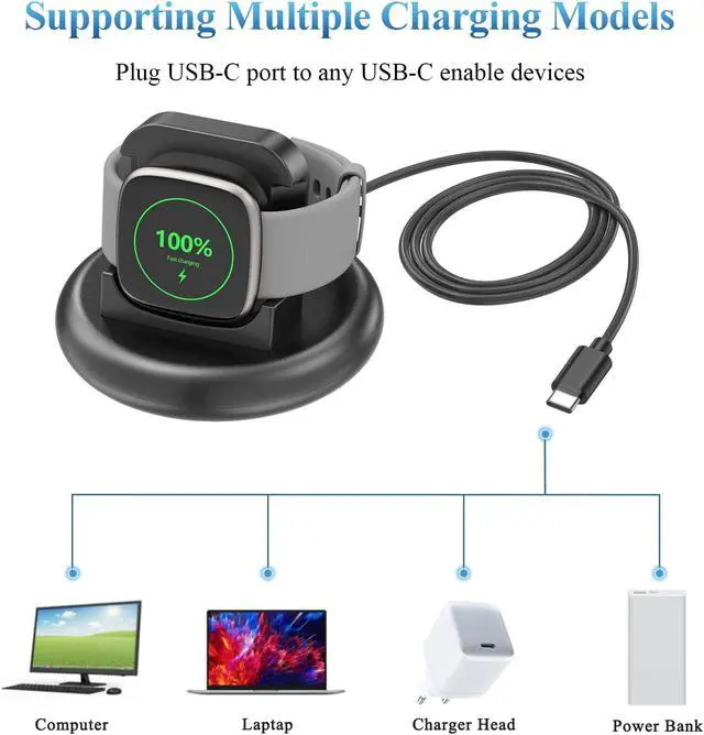 Strong Magnetic: Just place the connector near the back of the Watch and the magnet will automatically snap it into place. Free to adjust the angle without deviating from the center of the charger. Over-Voltage & Over-Current ProtectionMeliya replacement Versa 3 charging dock provides fast and stable charging speed. Made of over- voltage and over-current protection they will protect your Sense 2 & Versa 4 from being damaged when charging.