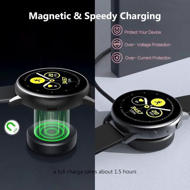 COMPATIBILITY: The Galaxy Watch Charger is widely compatible with Galaxy Watch 8 //Galaxy Watch 7 40mm 44m/Galaxy Watch 6 40mm 44m/Galaxy Watch 6 Classic 43mm 47mm/5 40 44mm/5 Pro 44mm/4 40mm 44mm/4 Classic 42mm 46mm Galaxy Watch 3 41mm/45mm (Not for gear S3) Active 2 40mm 44mm Active 40mm[Safe and Fast ChargingThe watch snaps in magnetically for a perfect fit every time. Voltage Regulator and Power protection circuit included ensures steady and faster charging.