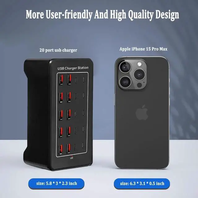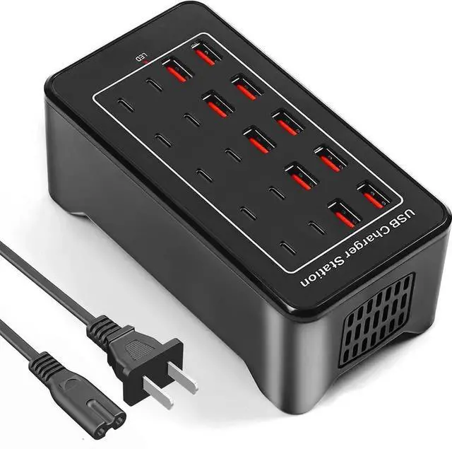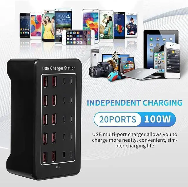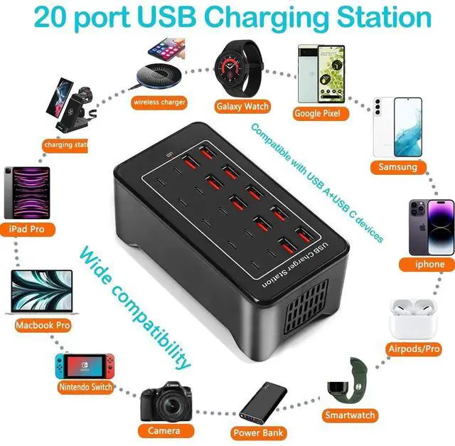 [Fast Charging USB Charging Block] This 20 port usb charger block comes with 10 USB A and 10 USB C. You can charge the smartphones, tablets or other of USB-charged devices at the same time, being easy and simple in your daily life. Keeping everything in one place, convenient and organizes the pool of cables from your desk.(Note: This USB C Wall Charger is Not Suitable for Charging Laptop!!!)