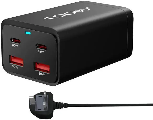 This 100W GaN desktop charger is the ultimate solution for powering multiple high-power devices from a single outlet. It combines the efficiency and compact size of GaN technology with robust power delivery to fast-charge your laptop, phone, tablet, and other gadgets simultaneously.