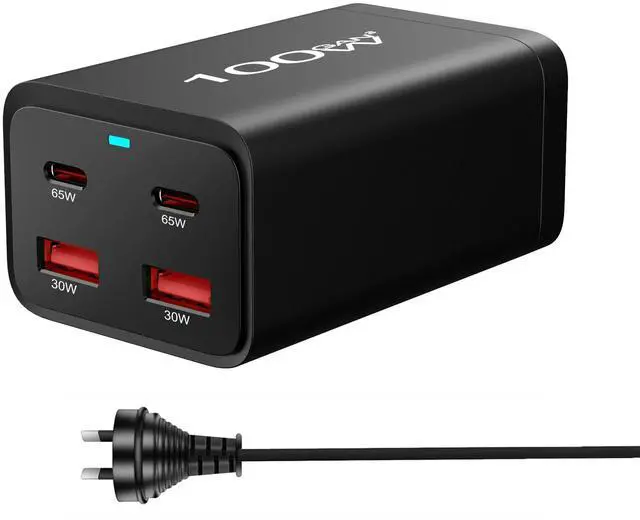 This 100W GaN desktop charger is the ultimate solution for powering multiple high-power devices from a single outlet. It combines the efficiency and compact size of GaN technology with robust power delivery to fast-charge your laptop, phone, tablet, and other gadgets simultaneously.