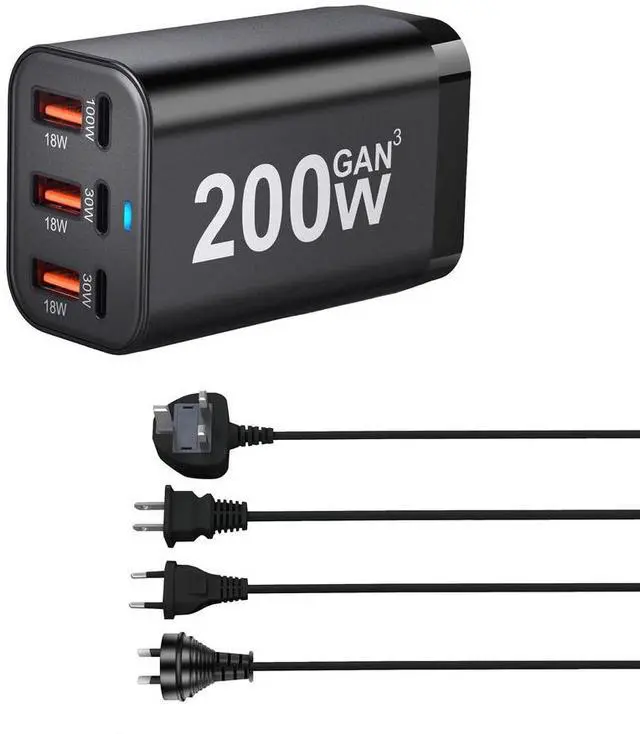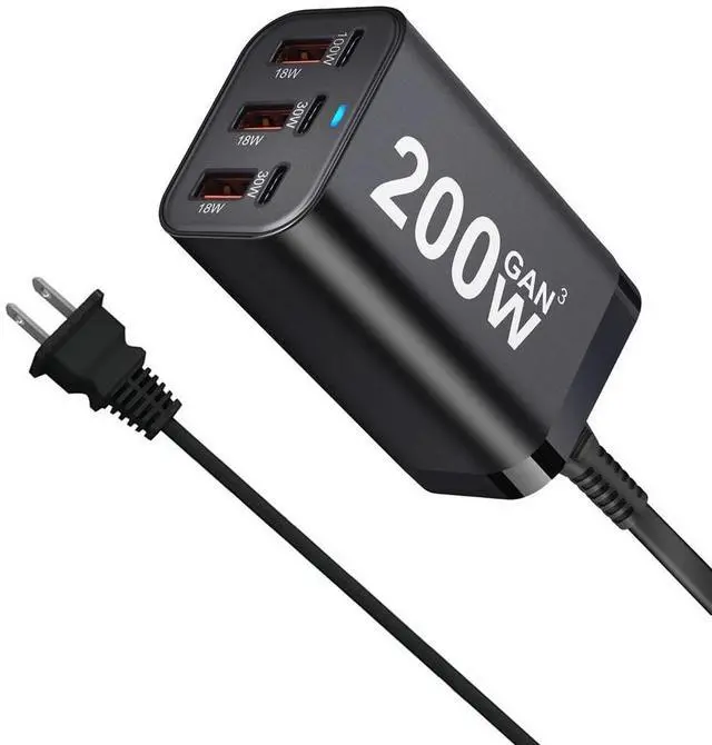 This 200W GaN desktop charger is the ultimate solution for anyone with multiple high-power devices. It consolidates all your charging needs into a single, efficient hub, eliminating clutter and delivering fast, safe power to your laptop, phone, tablet, and more.