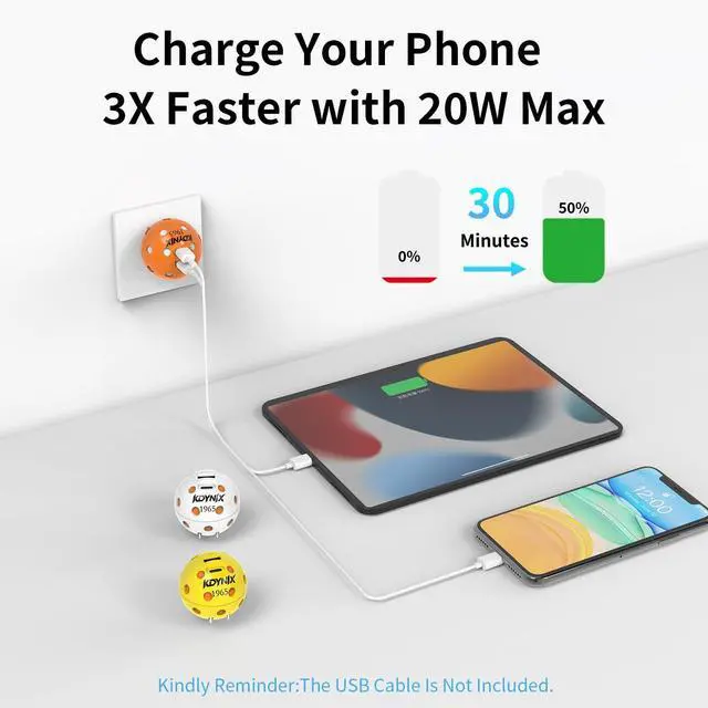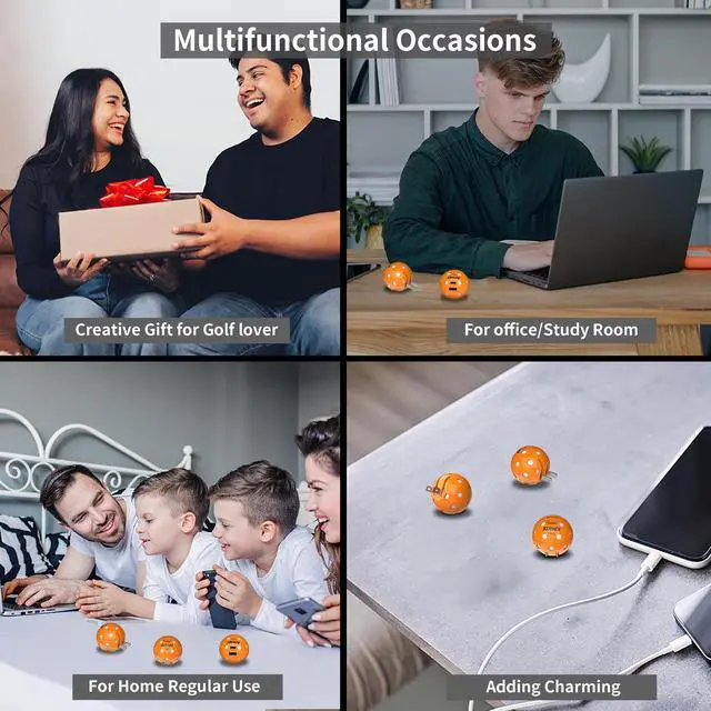 • Golf Ball Design & Dual Fast Charging:Patented golf ball texture design - fun meets functionality. Features USB-C port (20W max) + USB-A port (20W max) for simultaneous dual-device charging. Premium ABS material with foldable prongs, durable and scratch-resistant.