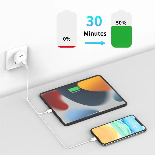 3X Faster Charging: Equipped with a USB-C port that supports fast charging, capable of charging an Phone to 50% in just 30 minutesup to three times faster than original standard chargers.