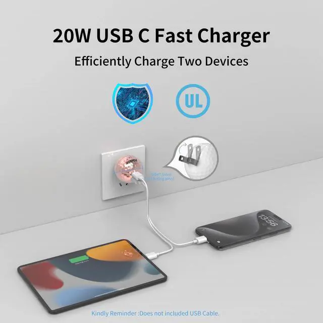 USB-C Charger, 20W Power Delivery, iPhone/iPad/Galaxy Compatible, Fast Wall Adapter