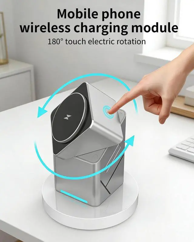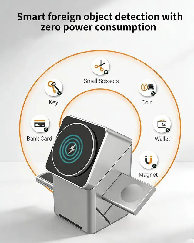 • Optimized fast chargingDelivers up to 15W for iPhone, 5W for AirPods, and 2.5W for Apple Watch, providing rapid and tailored charging for each device.