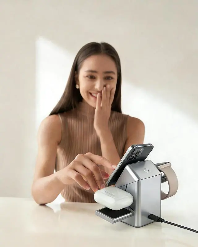 • Simultaneous multi-device charging Efficiently powers your iPhone, Apple Watch, and AirPods together, ensuring all your essential devices are ready when you need them.