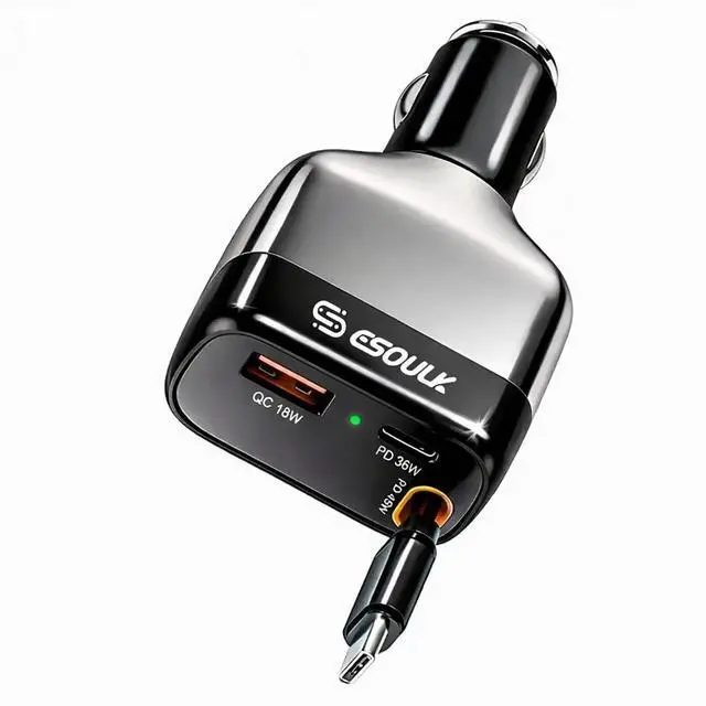 Keep your dashboard clutter-free and your devices powered with this versatile 3-in-1 Retractable Car Charger. Engineered for both speed and durability, it features a 33-inch retractable USB-C cable that supports up to 45W Max output, making it powerful enough to charge smartphones and tablets alike. The cable is designed to withstand the rigors of daily use, boasting a lifespan of over 10, 000 pulls and 16, 000 torsional bends. Beyond the built-in cable, the charger includes a dedicated 36W PD USB-C port and an 18W QC USB-A port, allowing you to charge three devices simultaneously.