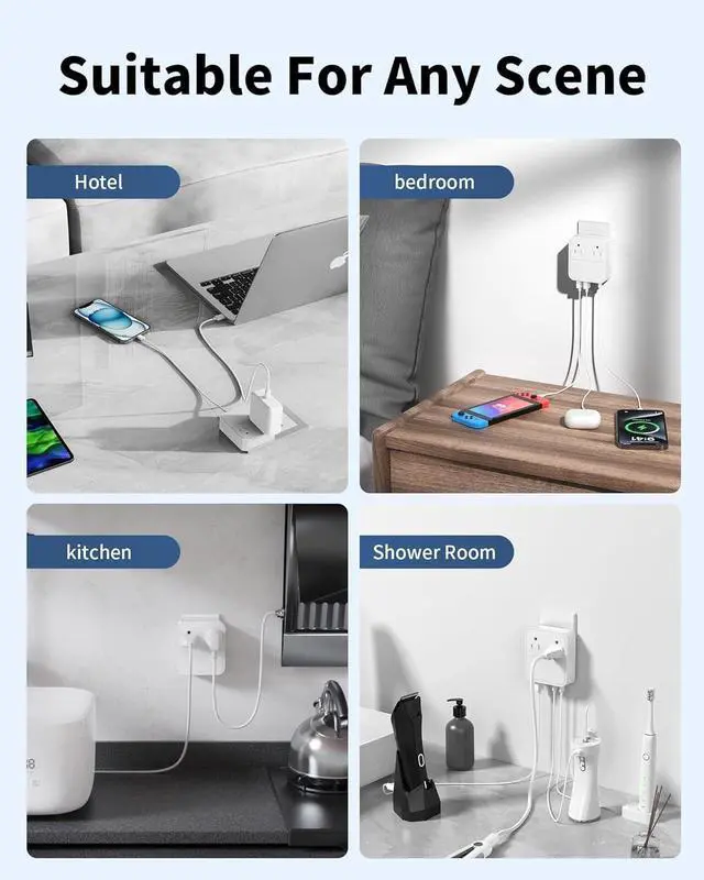 Multi USB Adapter Plug - VPSUN usb c charger block with outlet extender conveniently charges 6 devices at once and provides optimal charging speed up to 4A the maximum output of a single USB C port is 4A USB A port is 2.4A; the indicator light lets you know the USB wall plug power is on/off perfect for office home travel us4 Port Wall Charger Block - VPSUN can accommodate 4 USB/UsB C cable at the blocking this type C charging block is compatible with iphone/ and allowing users to charg mobile phones tablets cameras power banks the usb c power adapter will be effectively distributeg between the ports to ensure you get the best charging effect suitable for GFCl and standard outletsSmall and Portable - VPSUN multi usb plugs for wall outlet has no extension cord the size is 3.2 in lon and 2.9 in wide which is smaller than as a mobile phone the design is compact and lightweight can be put into luggage and backpacks no need to carry extra charger plugs perfect for travel and businessSafety Certification - our multi-device charger is ETL CE FCC PSE RoHS certified the type c chargerblock has built-in smart lC can provide over-current protection over-voltage protection over-heatprotection and short-circuit protection for all charging devices The USB C wall plug is made of ABS freproof material ensuring that your electronic devices are always safely chargedSuitable for any occasion - VPSUN USB C wall charging station accepts standard N American 2 or 3-pir flat plugs suitable for most household appliances such as America Canada Japan China Mexico Thailand Philippines etc.