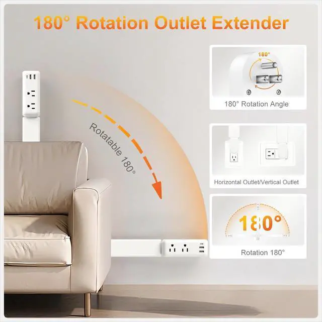 SAFETY CERTIFIED: This electrical outlet extender is constructed from high-quality ABS+PC fireproof material (heat-resistant up to 110-130°C). It is FCC certified providing over-current over-charge and short-circuit protection for complete peace of mind. 4.