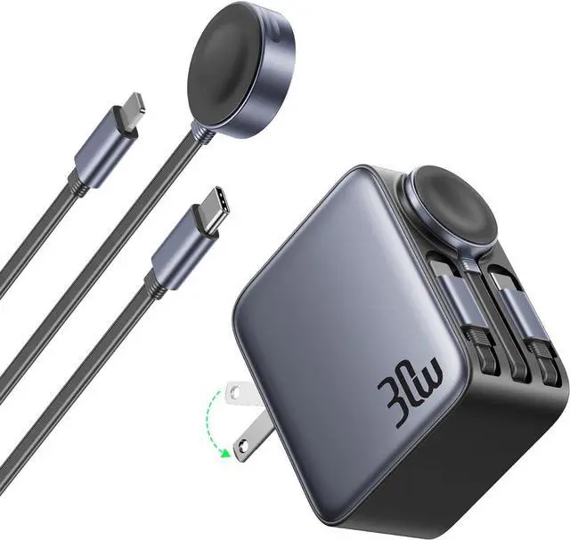 No extra cables no hassle. For any travelcruise vacation or RV tripour retractable charger for multiple devices is your must-have travel essential. All in One Multi ChargerThe retractable charger with AC wall plug has 3 retractable charging cables. The usb c charger block supports iPhone 17/16/15 series//AirPods/iPad and other usb c charging devices. The Watch charger is compatible with iWatch series. The retractable charger is compatible with iPhone 12/11-6 series. We've got all your charging needs covered. (Not compatible with watch series) Safe Charging & DurableOur retractable charger incorporates eight key protection featuresincluding against over-current over-voltage overheating and short-circuitingto ensure safe and rapid charging for your devices.