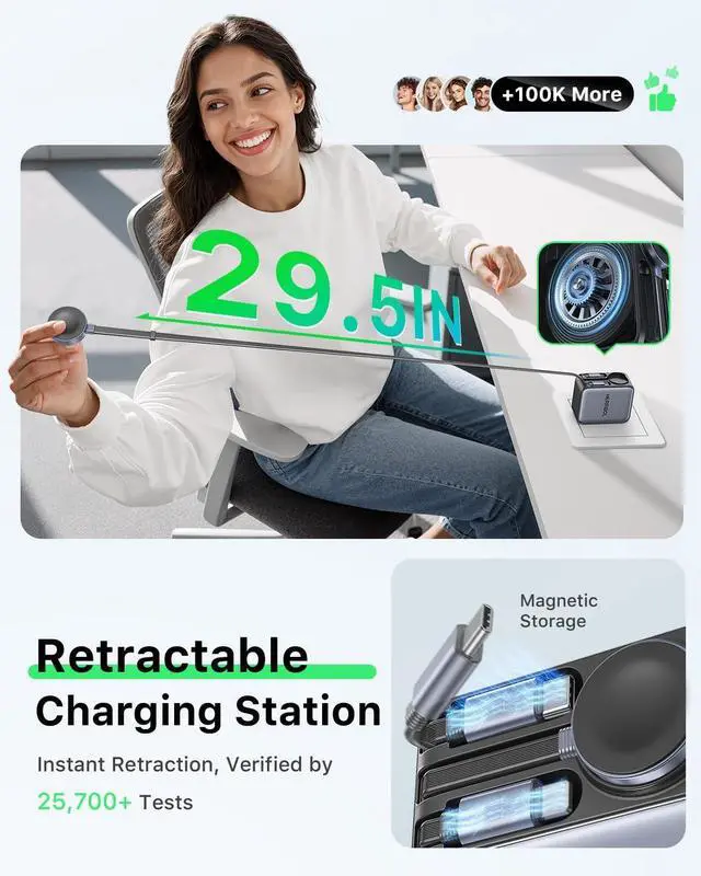 Its retractable PVC cable has undergone 25 700+ retraction tests and 23 500+ bend tests tripling its lifespan compared to conal products for groundbreaking durability. 30W Retractable ChargerOur retractable charger comes with wall plug and three 29.5 in retractable charging cables allowing you to say goodbye to tangled cables. It's suitable for travel vacation home business trips office and more. A perfect gift for anyone with electronic devices. What are you waiting for? Choose our retractable charger for your family lover friends or colleagues!