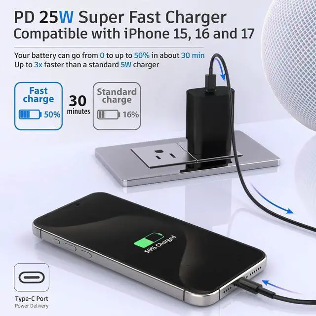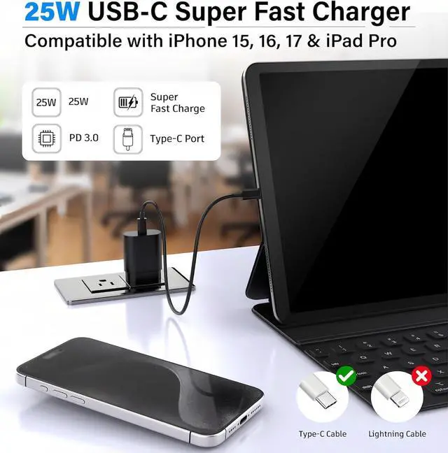 Charger Block: High-Speed charging compatible with Galaxy S26 S26+ S26 Ultra S25 S25 Plus S25+ S25 Ultrta S24 S24 Plus S24 Ultra S23 S23 Plus S23 Ultra S22 S21 S20 S20 Ultra S20+ Note 20 Note 20 Plus Note 20+ Note 10 Note 10 Plus S10 S10e Z Fold 3 5G Z Fold 4 Z Fold 5 iPhone iPhone 17 17 Air 17 Pro 17 Pro Max 16 16e 16 Plus 16 Pro 16 Pro Max 15 14 13 12 SE Mini 11 Pro Pro Max Xr Xs Xs Max iPad iPad Pro iPad Air iPod also provide full speed charging for other USB C devicesLightweight