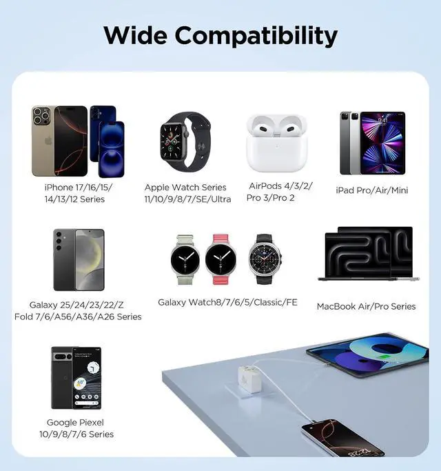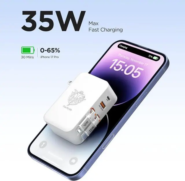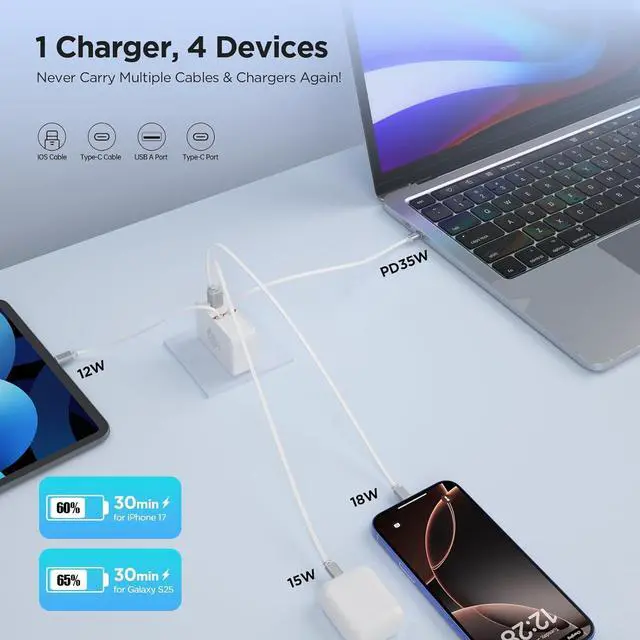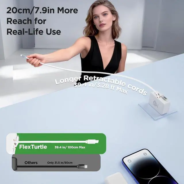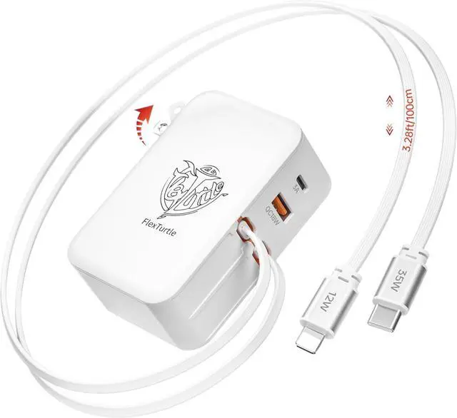 Compact & Space-Saving-This retractable wall charger features a footprint up to 20% smaller than other retractable chargers for multiple devices making it easy to carry and store. A practical travel charger for multiple devices that fits neatly into bags backpacks or carry-ons for home office and travel use4-in-1 Charging Solution-Designed as a retractable wall charger with dual cables it includes built-in USB-C and IOS retractable cables plus USB-A and USB-C ports. This all-in-one setup eliminates cable clutter and functions as a reliable multi charger for devices and other USB-powered electronicsHigh-Power Fast Charging-Engineered for performance this USB-C charger block delivers optimized power across all outputs: 35W PD via the retractable USB-C charger 12W through the retractable IOS cable 18W from the USB-A port and 15W from the USB-C portensuring efficient stable charging for multiple devices at onceLonger Retractable Cables-Each cable extends up to 100cm / 3.28 ft longer than standard retractable chargers giving you greater flexibility around wall outlets desks and nightstands. Ideal as a retractable iPhone charger wall plug for hotels offices and tight spacesGaN6 Safety Protection-Built with advanced GaN6 technology this charging block reduces heat while improving charging efficiency. Comprehensive safety featuresincluding over-current over-voltage overheating and short-circuit protectionensure safe and reliable daily use