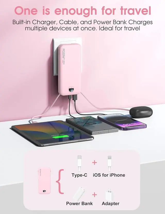 Pass-through charging makes you juice up your devices while the battery bank itself is rechargingno more waiting?? -?????????????????????????????????? Equipped with 1 built-in iOS cable 1 USB-C cable and 3 output ports this portable phone charger supports charging up to 5 devices at once. The power distribution technology efficiently manages the output (note: fast charging may suspend when multiple devices are connected simultaneously)?????????????????????????????????? &?? -?????????????????????????????????????????? The LED display screen of the portable charger power bank shows real-time remaining power level no more guessing. Equiped with 6-layer safety shield against overcharging over-discharging short circuits overvoltage overheating and battery swelling ensuring the safety of the powerbank. the slim and compact design makes this tsa approved portable charger fits easily in your pocket or bag???????????????????? 24-Month Replacement Promise. 10000mAh Portable Charger × 1 USB-C Fast Charging Cable × 1 User Manual × 1. Our customer care team is standing by to ensure your seamless experience