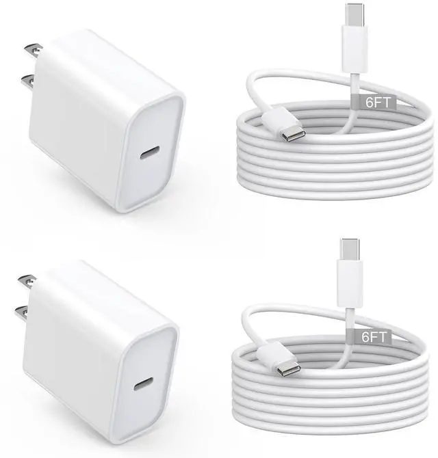 plus intelligent chip to protect against short circuit over voltage overheating and over current. The smart chip match the current required by the device automatically charge your iPhone 17/iPhone 16/ 15 iPhone/iPad device fast safely and steadily[ 6FT Long iPhone charger Cable ] 6 Feet extra long USB C to USB C cord equips automatic chip recognition function premium copper wire core protect against overheating and cable coat melting adding surprisingly durability greater charging stability higher efficiency more easier and convenient. the 6 foot (2 meter) charging cable length allows you charge your 17/16/15 and iPad models from extra long distance[ What You Get ] 2* iPhone 17/16/15 Fast Charging Block + 2 * 6FT USB C to C cables 24 hours friendly customer service.