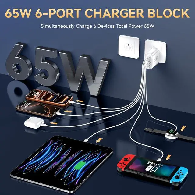 Charge up to 6 devices all at once and its ultra-compact build plus high charging efficiency slashes wait time to a minimum. Power up your phones tablets cameras power banks and more conveniently in one goperfect for home office and on-the-go use. Super Highly Compatible USB C Wall ChargerThis type c charging block adapter is universally compatible with almost all electronic devices including iPhone 17 series (17/17 Pro/17 Pro Max/17 Air) iPhone 16 series (16/16 Pro/16 Pro Max/16 Plus) iPhone 15 14 13 12 series iPhone 11/10/8/7/6 Pro Max/XS/XS Max/XR/X It works with ipad Pro/Air/Mini for Galaxy S25 Ultra/S25+/S24/S23/S22/S21/S20/Note 20 10/Galaxy Z Fold 3 for Google Pixel Phones Tablets other Android Phones and more.