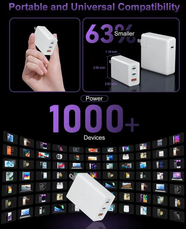 Compatibility: This 100W GaN mac book charger supports charging 1 laptop and 2 smartphones/tablets at the same time. Compatible with MacBook Pro/Air i Phone 17/17 pro/17 pro max/17 air/16/16 pro/16 pro max/15/15 pro/14/13 i Pad Pro/Air/mini. Also for S26/S26 Ultra/S25/S24/23 Ultra Google Pixel XPS Switch and moreWhat