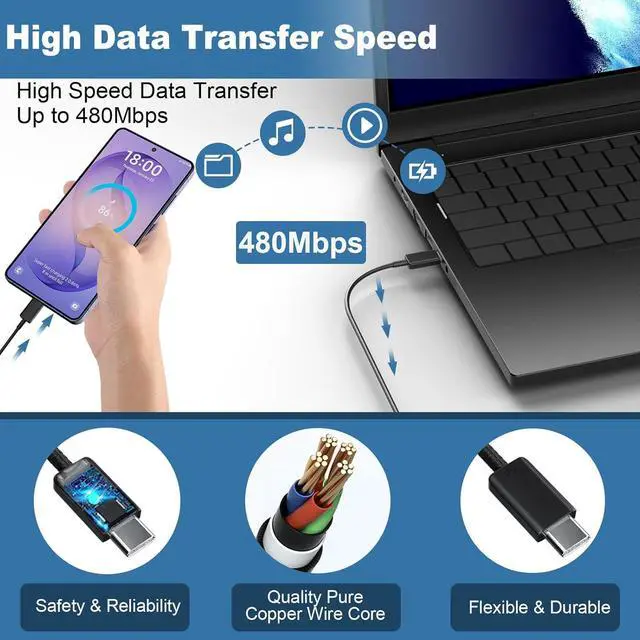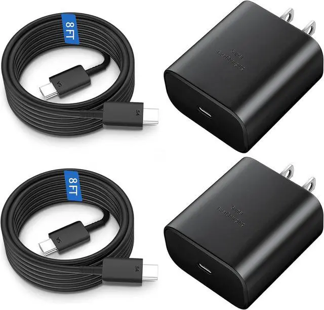 Automatically stops charging when battery capacity is full to ensure your device safety and longevityFast Charger for Phone The 8FT detachable USB-C to USB-C charger cable is included offers a user-friendly reversible design so you can charge your phone from any other c type power source such as your computer or a portable battery. Use the cable to sync and transfer files at blazing speeds with your Galaxy or any other compatible smartphone or laptopWhat You Get2x 45 Watt USB-C Super Fast Charging Block 2x8FT USB C to USB C Fast Charging Cord.