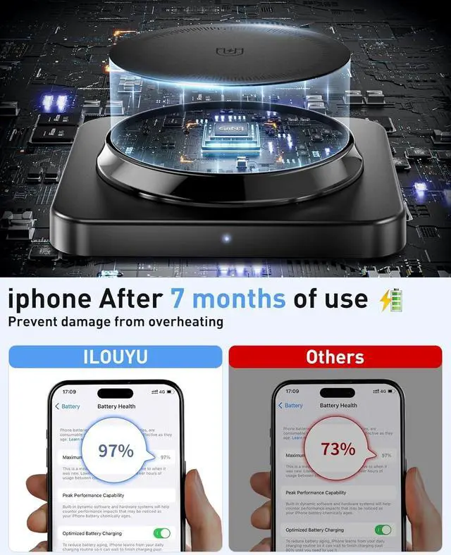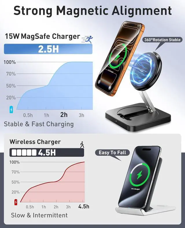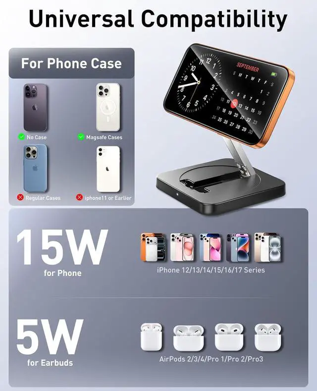 Power Boost: Supports up to 15W fast charging for iPhone series delivering a 50% charge in just 30 minutes (3x faster than standard 5W charging).