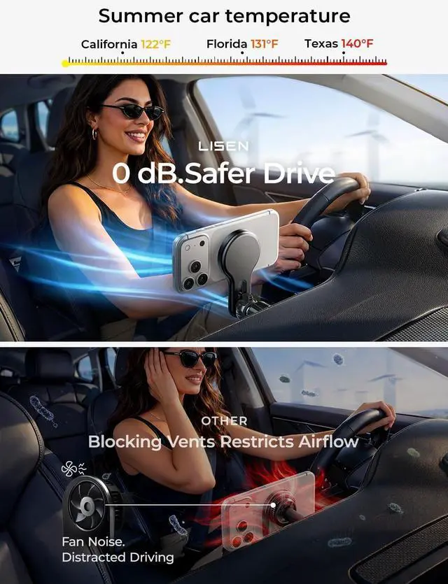 [One-Click Release]: Enjoy the convenience of one-click operation for easy phone placement and removal. No need to fret over complex installation steps keeping you focused on your driving LISEN magsafe car mount fast charging Suitable for iPhone 17 16 15 14 13 12 series and other phones supporting Wireless charging. We provide a one-stop solution to satisfy all your charging needs[Compatible with