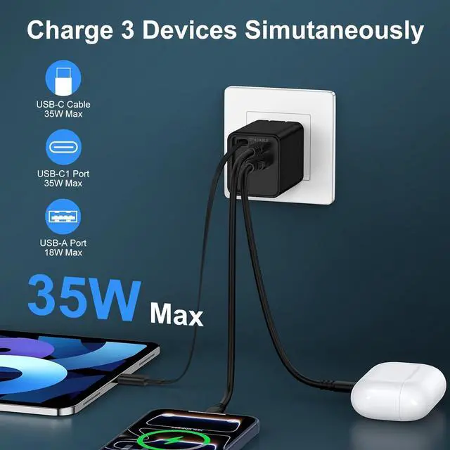Travel Essentials Compact & Portable: This 35W c type charger block focuses on a simple and convenient charging experience. Whether at home on a business trip or traveling this type c power adpater charger box plug adapter can meet your charging needs.