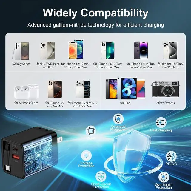 Safety & Reliability: This galaxy S26/S26 Ultra charger USB C Wall Plug is made of ABS + PC fireproof material with protection against overheating overcharging overcurrent overload and short circuit which can automatically protect the device and greatly extend its battery life. The 35W charger block Charging will be automatically stopped when the battery is full. ensuring that your digital device always charges safely.