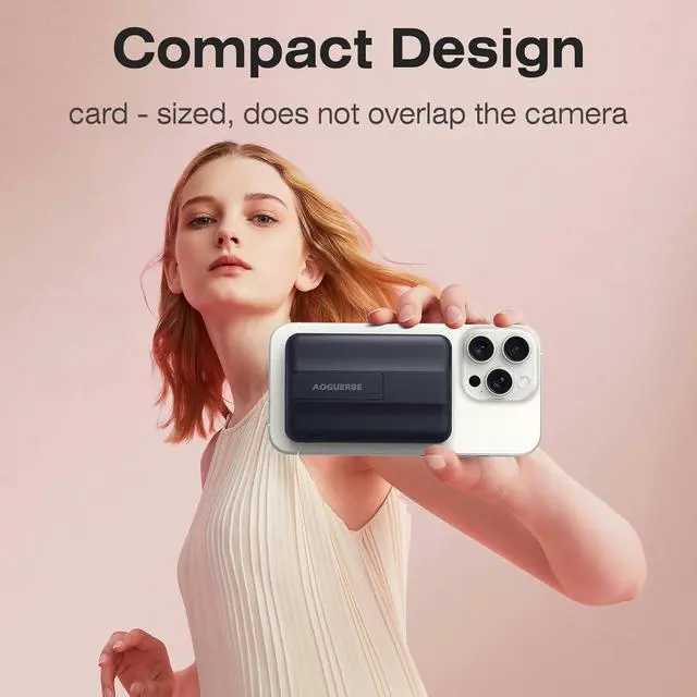 (Note: Suitable for use without cases or with mag-safe cases)Strong Wireless Portable Charger For MagSafe battery pack with the newest magnetic technology (stronger magnetic and nano adsorption). With a maximum wireless output of 15W it charges your iPhone 16 to 50% in just 30 minutes. Please use the original USB-C cable provided to charge the magnetic power bank. With the magnetic charger you can charge your phone anytime and anywhere without worrying about its power perfect for vacation travel and camping. Card-Sized Easy to Carry This mag safe. charger into your pockets or bags thanks to its compact dimensions of 4.09 × 2.68 × 0.79 inches no Blocking to the Cameras. With the one-touch stand design allows you to watch videos while charging freeing your hands. You just need to press the mag-safe power bank button 2 times in a row to enjoy the stand only. Your Safety Our Priority AOGUERBE magnetic portable charger for iphone has 8 built-in cryogenic IC ice cores and multiple system protection such as Over Voltage protection Over Charge protection Over Current protection Short Circuit protection. Multi-Protect safety system ensures that your devices are shielded from potential hazards providing you with a good charging experience.