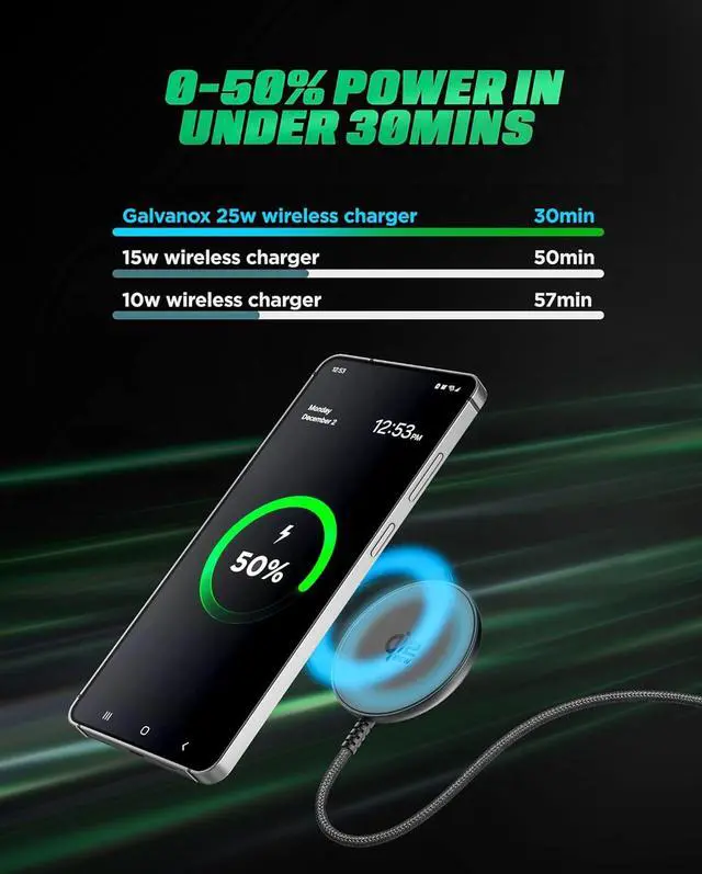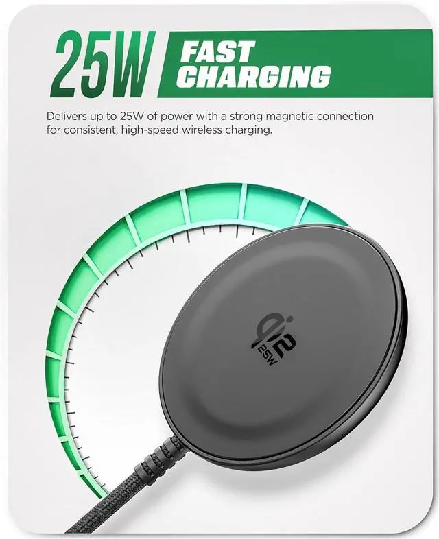 Magnetic Alignment: Precision engineered to maintain full coil-to-coil magnetic alignment on devices reducing heat buildup and minimizing efficiency losses to sustain higher wattage without the early power throttling common on non-Qi 2.2 wireless chargersUp to 25W Output for