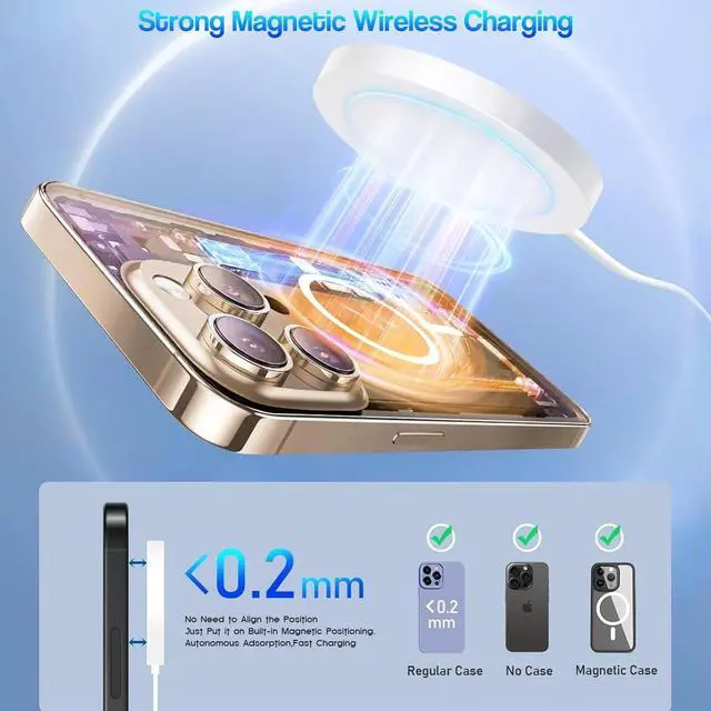 Magnetic Wireless Charger]: Whether you're working playing games watching movies listening to music or just chatting the i phone 17 magnetic wireless charging pad allows the magnets to attach to your iPhone perfectly. The magnetic charging feature allows the Mag charger to align perfectly with your phone Strongly attached magnets allow you to charge with confidence[Safer