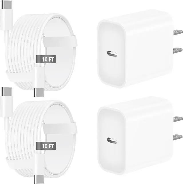 The iPhone 15 chargers USB C with the 10ft Type C charger cable match the current required by the device automatically charge your iPhone iPad device fast safely and steadily. Enjoy a worry-free 60-month warranty and 24/7 customer service with your purchase of this 2 Pack PD 20W USB-C Power Adapter Blocks and 2 Pack 10ft extra long USB C to USB C Fast Charging Data Sync Cables. For any questions about our products please feel free to contact us we will provide you with a satisfactory solution within 24 hours. allows you to conveniently charge phone while lying on a sofa or bed.