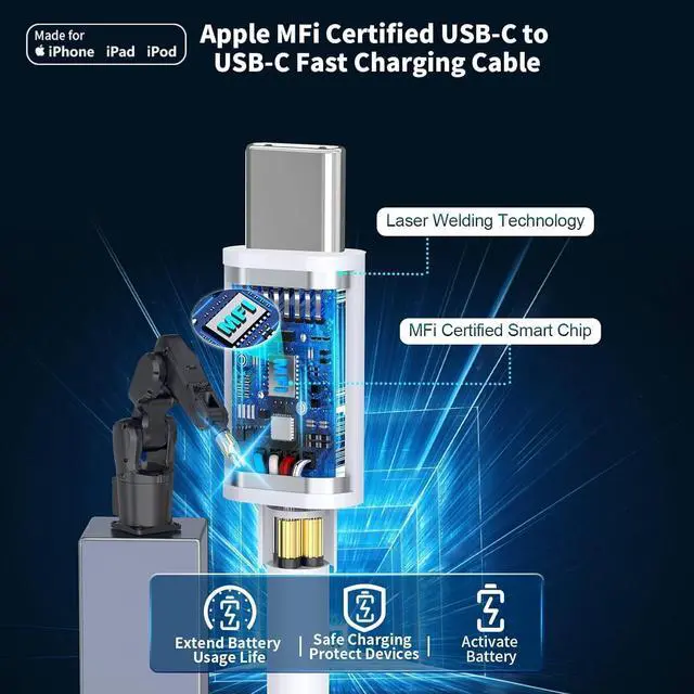 Using Intelligent Chip provide overvoltage protection battery protector and intelligent power distribution functions protect iPhone 16 Pro/iPad Pro AirPods battery well from damages. Use MFi Certified 10FT Long Type-C to Type-C Cable for iPhone 17/17 Pro/17 Pro Max/Air iPhone 16/16 Pro/16 Pro Max/16 Plus/15/15 Pro/15 Pro Max/15 Plus/2021/2020/2018 fits iPad Pro 12.9 /11 inch fits iPad Air 5th fits iPad Air 4th fits iPad Mini 6th Gen S23 S23+ S23 Ultra S22 S21 S20 S10 7 Pro and more USB-C device. The UL-Certified 20W USB C fast charger for iPhone 17 16 15 has multi protection safety system protect your devices from over current over voltage short circuit and overheating etc.