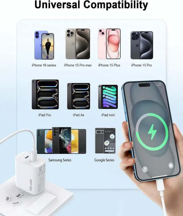 Compact and Powerful: Experience 40W of power in a charger that's roughly the same size as an original 20W charger making it an ideal travel companion without sacrificing performance.