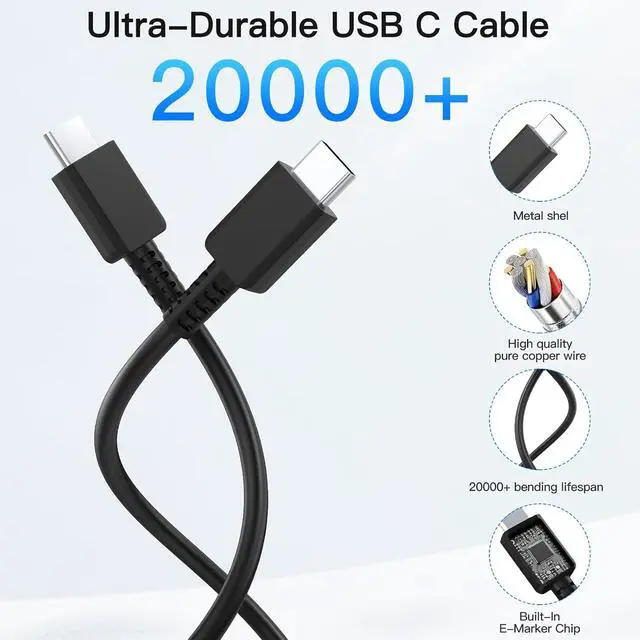 ? Durable USB C CableThe iPhone 17 16 15 charger cords are made of top-rated material and coated with premium TPE which last 4X longer than other type c cord and proven to withstand over 20 000 bends in strict laboratory tests. And the reversible design of the cable allows for easy insertion data transfer speed up to 480 Mbps. They offer a user-friendly reversible design so you can charge your phone from any other c type power source such as your computer or a portable battery.? Superior Safe Phone ChargerThese android chargers are multiple built-in safeguards protect your devices against damage caused by over-voltage over-current over-heating over-charging and short circuit issues.