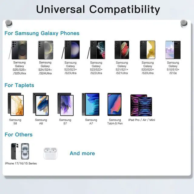 ? Super Fast Charger USB CMitesbony USB C super fast charger block adopts the latest fast charging technology PPS (Programmable Power Supply) to super fast charge Galaxy S25/S24 Ultra from 0% to 50% in just 20mins and charge iPhone 17 16 Pro Max up to 50% in just 20mins much higher than 25W chargers.? One for AllThe Mitesbony type-c fast charger set fits almost all USB-C devices. Power delivery fast charging compatible with iPhone 17/iPhone 17 Pro/iPhone 17 Pro Max/iPhone Air/iPhone 16 Pro Max / iPhone 16 Pro/ iPhone 16/ iPhone 16 Plus/iPhone 15/ iPhone 15 Plus/ iPhone 15 Pro/ iPhone 15 Pro Max/iPad Pro 11 inch 4/3/2/1/iPad Air 5/4/iPad Mini 6; super c chargers fast charging compatible with Galaxy S25 Ultra/S25+/S24 Ultra/S24+/S23 Ultra/S23+/S22 Ultra/S22+/S20 Ultra/Note 10 Plus Tab S9/S8/Ultra/S7+/ Galaxy S25/S24/S23/S22/S21/S21+/S21 Ultra/FE 5G/S20+/Note 20 Ultra and more.