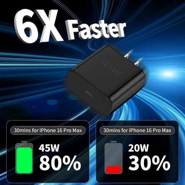 Equipped with advanced smart chips it intelligently adjusts the current to match your device's needs guaranteeing a rapid and secure charging process for your iPhone16/iPhone 15. will automatically stop charging when fully charged for a safety charging and long lifespan. USB C Wall Charger for iPhone 16 2 X 45W iPhone 16 fast charger+2 X 10FT iPhone 16 usb c to usb c charging cable. 60-month worry guarantee. if you have any questions please contact us We promise to solve your problems within 24 Hours.