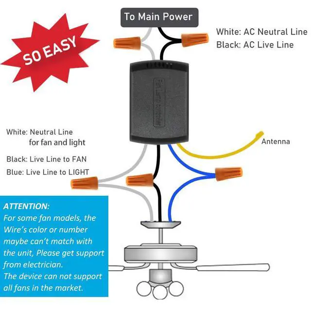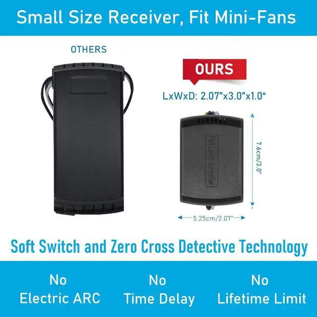 - Check the dimension of receiver carefully to make sure there is enough space in the canopy of your fan although the receiver is really small size