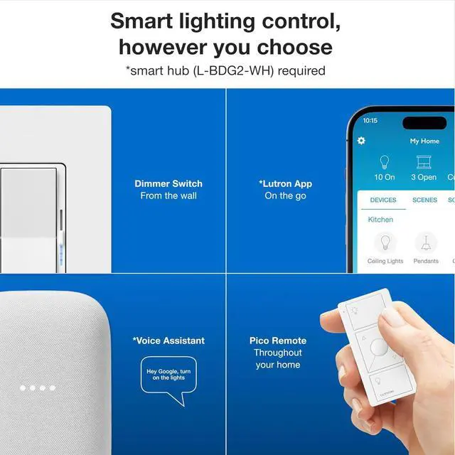 RELIABLY SMART CONNECTION: The Caseta smart hub works without Wi-Fi, giving your smart dimmer super-fast, ultra-reliable smart lighting that works without slowing other Wi-Fi devices down