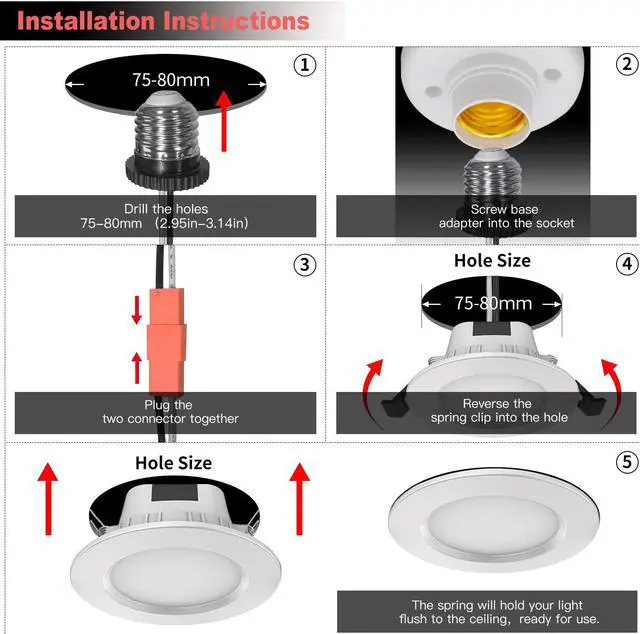 Package Included: 1 x Smart LED Downlight 9watt E26 Socket (70w Equivalent)